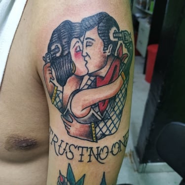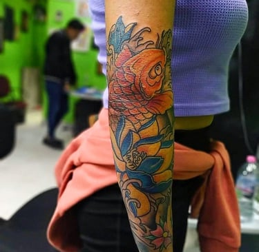 Diego Puerkoskin se especializa en tradicional americano y japonés, trabajando con líneas sólidas, negros intensos, diseños clásicos y personalizados.